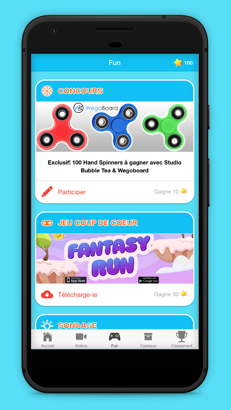 Découvre également nos différents jeux intégrés comme la Ferme aux Étoiles, le hand spinner, brise oeuf et bien d'autres.