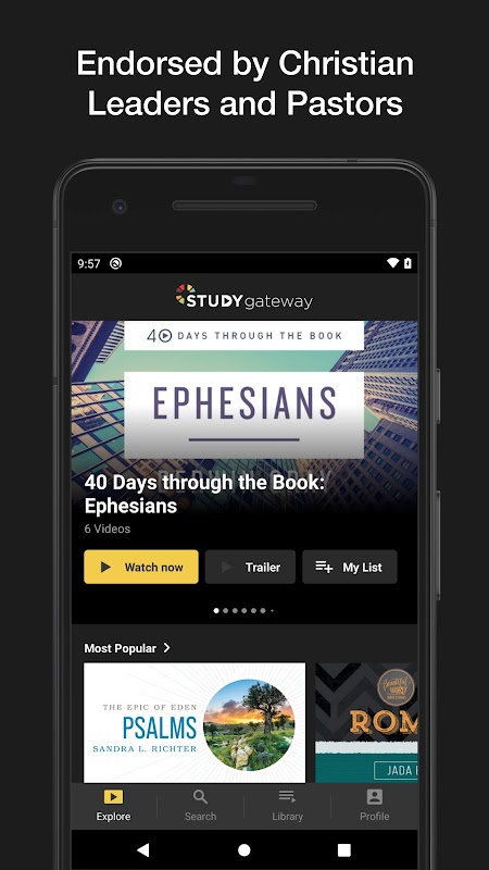 স্টাডি গেটওয়ে হল জোন্ডারভান এবং থমাস নেলসনের স্ট্রিমিং ভিডিও বাইবেল অধ্যয়ন পরিষেবা, যেখানে ম্যাক্স লুকাডো, অ্যান গ্রাহাম লোটজ, লুই গিগলিও, রিক ওয়ারেন, ডারউইন গ্রে, লাইসা টেরকেউর্স্ট, জেনি অ্যালেন সহ বিশ্বের সবচেয়ে বিশ্বস্ত বাইবেল শিক্ষক, লেখক এবং যাজক রয়েছে। , অ্যান্ডি স্ট্যানলি, ক্রিস্টাল ইভান্স হার্স্ট, জন অর্টবার্গ, অ্যান ভস্ক্যাম্প, ক্রিস্টিন কেইন, জাডা এডওয়ার্ডস, বব গফ এবং জিম সিম্বালা। শিষ্যত্ব, কাটিয়ে ওঠা এবং নিরাময়, খ্রিস্টান জীবনযাপন এবং বাইবেল আলোচনার মতো বিষয়ে হাজার হাজার বাইবেল অধ্যয়ন ভিডিও দেখুন। আপনার স্টাডি গেটওয়ে সাবস্ক্রিপশনের অংশ হিসেবে অ্যাপটি পান।