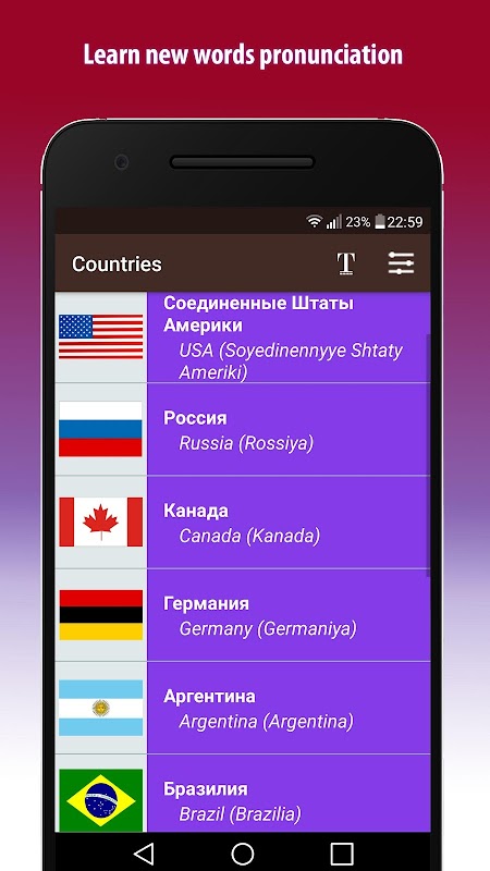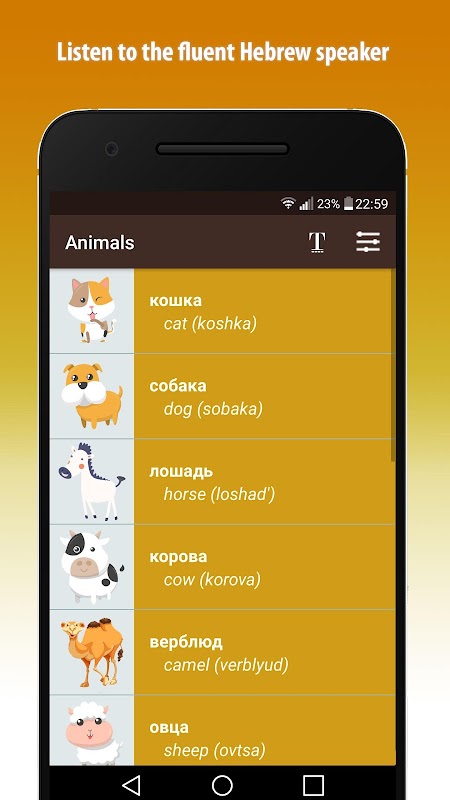 - After tapping on each word, or phrases there is an actual pronunciation sound of this word/s in Russian.
