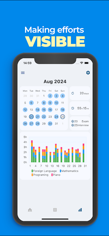 আপনি সহজেই গ্রাফ এবং ক্যালেন্ডারের মাধ্যমে আপনার অধ্যয়নের সময় এবং অধ্যয়নের পরপর দিন পর্যালোচনা করতে পারেন। আপনার প্রচেষ্টায় আস্থা তৈরি করতে এটি ব্যবহার করুন।