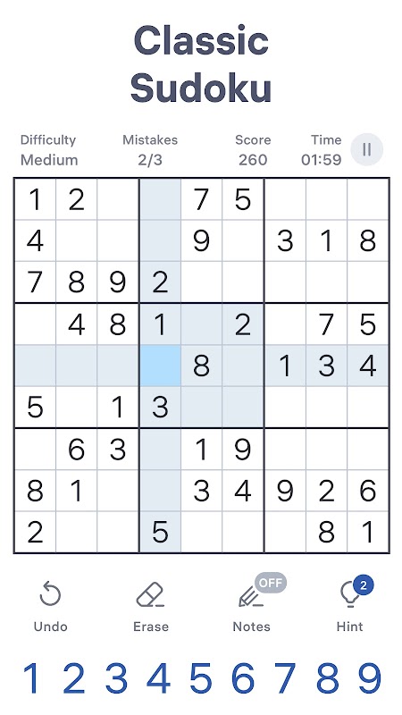 ক্লাসিক সুডোকু দিয়ে আপনার মস্তিষ্ককে চ্যালেঞ্জ করুন যে কোনো জায়গায়, যে কোনো সময়!