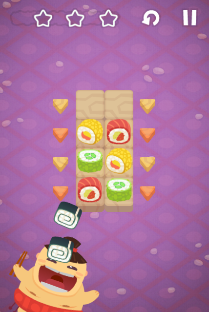 Funny sumo wrestler adores sushi. Create sushi combinations and may be you will be able to feed the sumo guy!