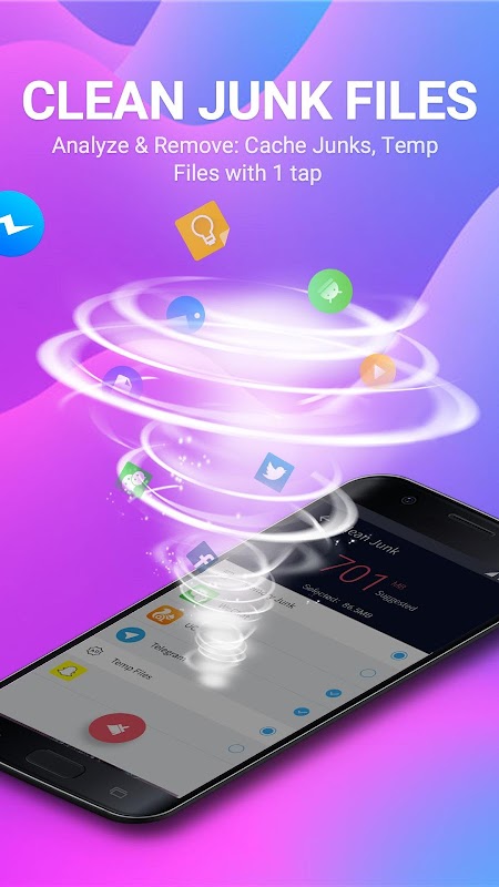 This junk-file cleaner provides real-time memory and battery monitor. The phone booster stop the unnecessary background apps, saving battery power and extending battery life.