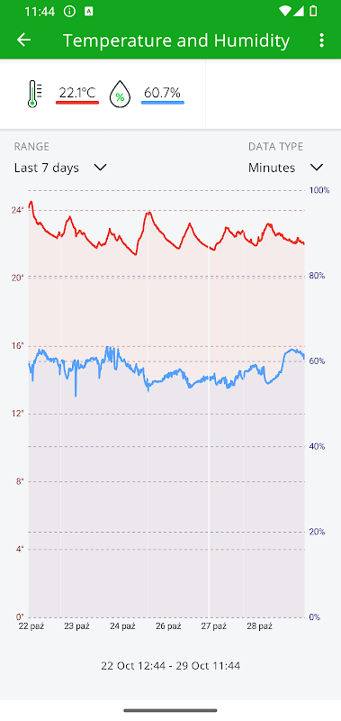 - একটি সংযুক্ত সেন্সর থেকে বর্তমান তাপমাত্রা এবং আর্দ্রতা