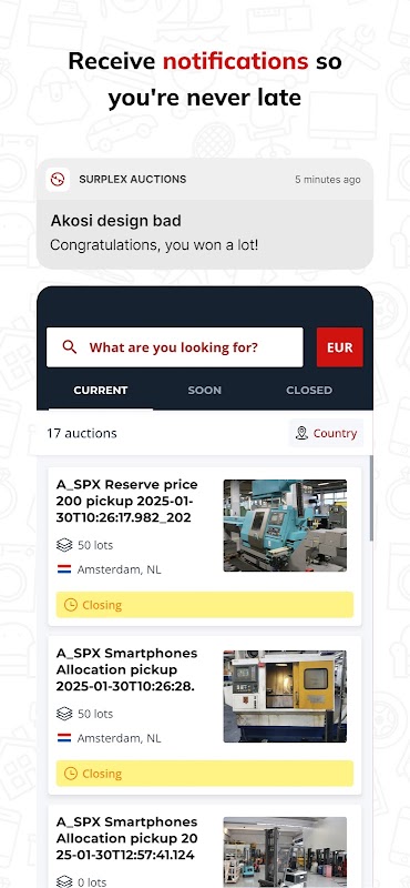 কিন্তু এটা শুধু ব্রাউজিং এবং আবিষ্কার সম্পর্কে নয়। সার্প্লেক্স আপনাকে প্রতি নিলামের বর্তমান অবস্থা সম্পর্কে ক্রমাগত আপডেট রাখে। আপনি বিড করেছেন বা নিলাম জিতেছেন, আপনি তাৎক্ষণিক বিজ্ঞপ্তি পাবেন, নিশ্চিত করুন যে আপনি কখনই গুরুত্বপূর্ণ কিছু মিস করবেন না।