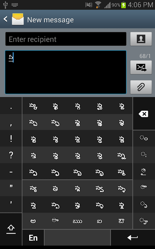 সম্পূর্ণ স্বরবর্ণ ( అ, ఆ, ఇ, ఈ, ఉ, ఊ, ఎ, ఏ, ఒ, ఓ ) নীচে একটি পৃথক Chakra চিঠি টিপে রেখে প্রদর্শিত < B> అ . অতিরিক্ত স্বরবর্ণ ( ఐ, ఔ ) কীপ্যাড ডান নীচে আপফ্রন্ট প্রদর্শিত হবে. কদাচ ব্যবহৃত স্বরবর্ণ এবং matras ( ఋ, ౠ, ఌ, ౡ, ౕ, ౖ, ౘ, ౙ, ఽ ) ఋ চিঠি টিপে প্রদর্শিত হবে. সংখ্যাসূচক এবং চিহ্ন একটি স্থানান্তর প্রদর্শিত হয়. আপনি ইনপুট ইংরেজি অক্ষর সাময়িকভাবে QWERTY কীপ্যাড প্রশ্ন ধরণে যেতে পারে.