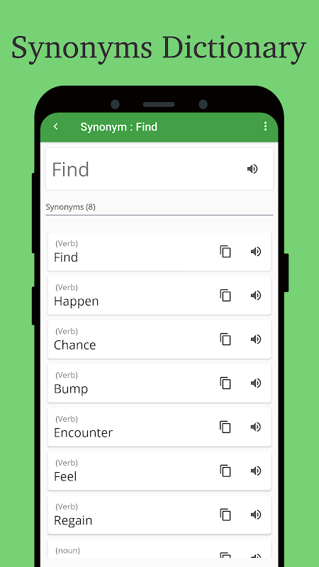 Synonyms Dictionary is a feature-rich, light-weight dictionary app for everyone who wants to find synonyms. Thanks to the voice output this app offers, ​​you can even listen to the pronunciation. Direct copy function will allow you to copy the word directly into your clipboard. This app has a super clean interface, and you won't get distracted while you're in search of synonyms. This app is ideal for anyone who is learning English.