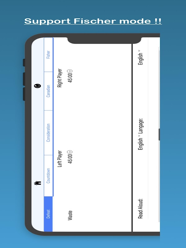 持ち時間、秒読み時間、考慮時間、フィッシャー方式の追加時間を設定することができます。