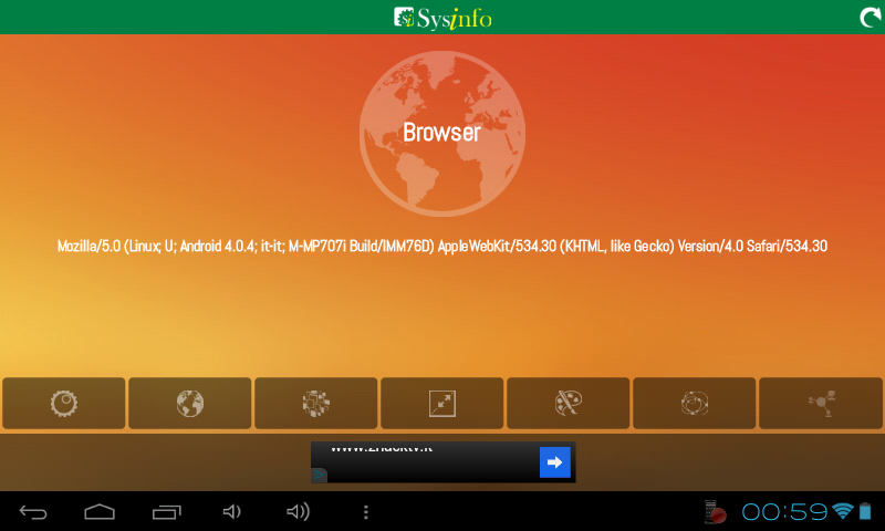 SysInfo, সহজ অ্যাপ্লিকেশন আপনার সিস্টেম আবিষ্কার: অপারেটিং সিস্টেম, ব্রাউজার, আইপি, মাঝামাঝি. এবং আরো ..