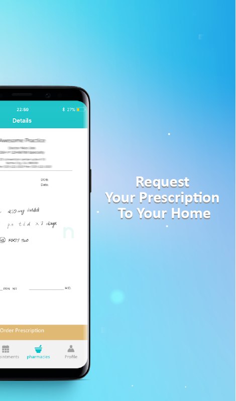 - প্রেসক্রিপশন স্ক্যান করতে এবং অবিলম্বে ডেলিভারির জন্য আপনার নির্বাচিত ফার্মেসী এ পাঠানোর জন্য অ্যাপ্লিকেশনটি ব্যবহার করুন