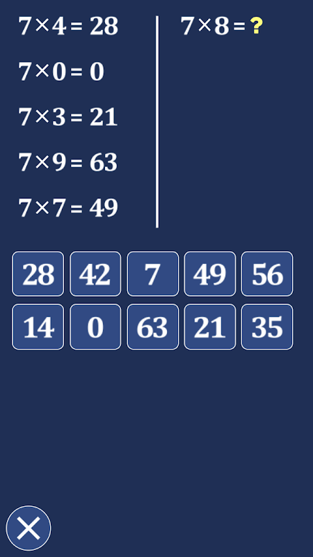 Table7x অ্যাপলিকেশনে কোন ফ্রিলস নেই: 7 দ্বারা গুনিত সারণি এবং অন্য কিছু নয়।