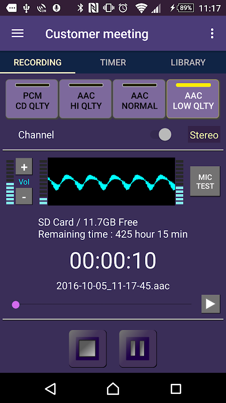 * যারা রেকর্ডিংয়ের সময়টিকে অগ্রাধিকার দিতে চান তাদের জন্য কম শব্দ মানের মোড (32 কেএইচজেড, 22.05 কেএইচজেড, 11.025 কেএইচজেড) নির্বাচন করাও সম্ভব।
