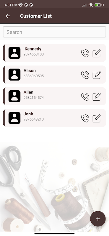 এই অ্যাপ্লিকেশনটি বিশেষভাবে দর্জিদের জন্য তৈরি করা হয়েছে এবং ফিজিক্যাল রেজিস্টার বইয়ের পরিবর্তে অ্যান্ড্রয়েড মোবাইলে গ্রাহকের বিবরণ এবং কাপড়ের পরিমাপও পূরণ করে।