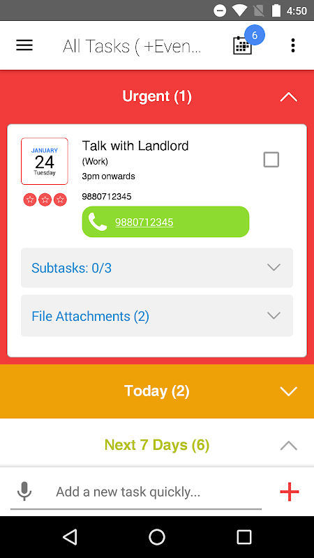 Get a quick overview of your upcoming tasks, to-dos and events while simultaneously makes adding date-based tasks even faster using the new Calendar widget. Events in your Google Calendar will also show here, helping you avoid double booking yourself when setting deadlines to your various tasks.