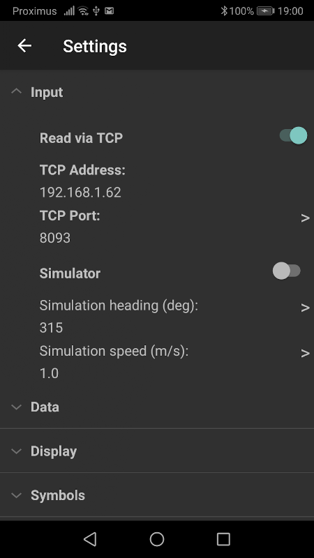TCP Planview GPS Attitude অ্যাপ থেকে পাঠানো ডেটা প্রদর্শন করতে পারে।