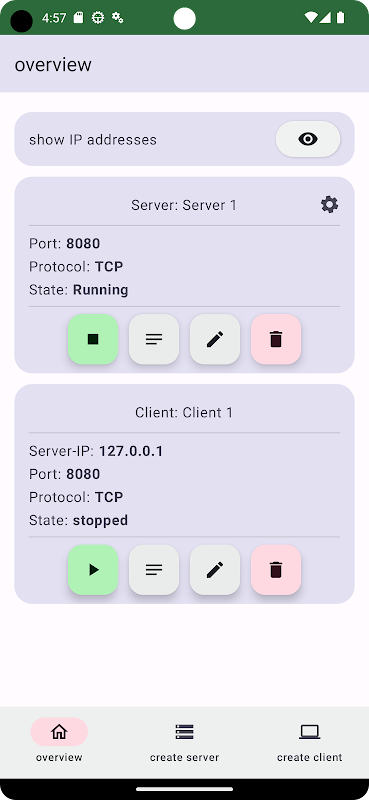 এই অ্যাপের মাধ্যমে আপনি একাধিক TCP/UDP সার্ভার এবং ক্লায়েন্ট তৈরি করতে পারবেন।