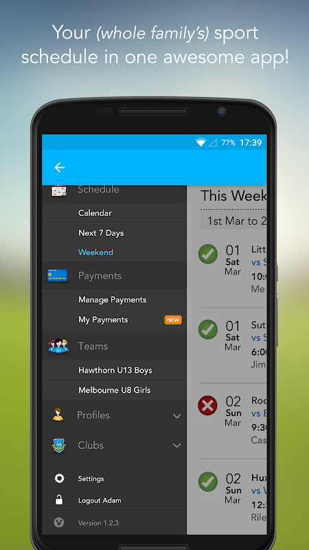 * Powerful messaging from within the app - easily contact entire team with one single message pushed out to whole team ( eg when training gets washed out! )