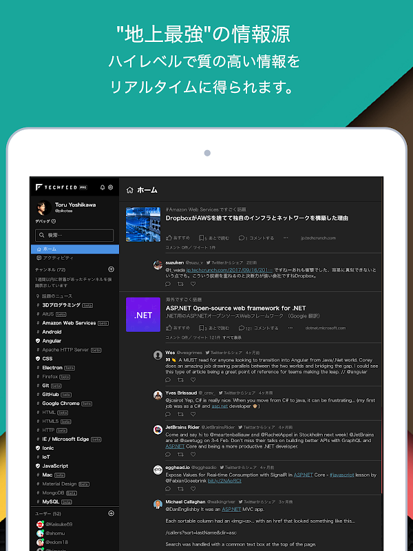 TechFeed "চ্যানেলগুলি" হল 200 টিরও বেশি অনলাইন সম্প্রদায় যা একচেটিয়াভাবে ইঞ্জিনিয়ারদের জন্য ডিজাইন করা হয়েছে৷