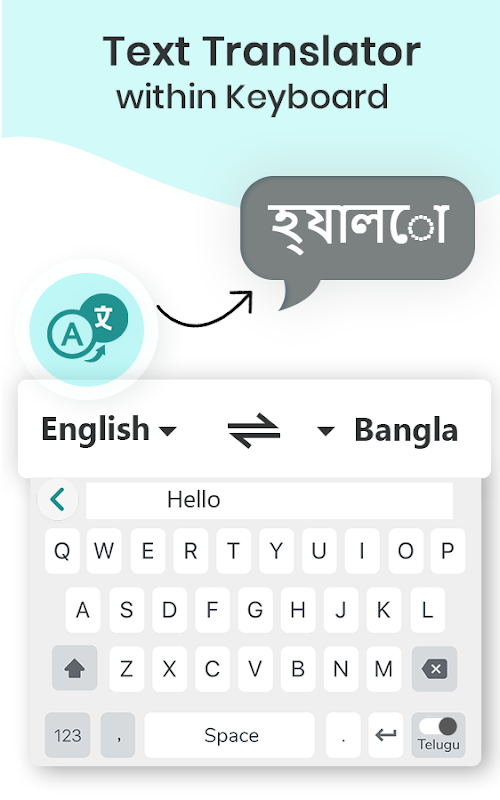 তেলেগু ভয়েস টাইপিং কীবোর্ডের রয়েছে এবং অনুবাদকের একচেটিয়া বৈশিষ্ট্য এখন আপনি তেলেগু থেকে ইংরেজী এবং ফ্রি অনুবাদক সহ 100+ ভাষায় অনুবাদ করতে পারেন। পাঠ্য অনুবাদক কীবোর্ডের মধ্যে উপলভ্য আপনার কেবলমাত্র ভাষা নির্বাচন করতে হবে এবং আপনার পাঠ্যটি তাত্ক্ষণিকভাবে অনুবাদ করতে এবং আপনার স্ক্রিনে অনুবাদটি ভাগ করে নেওয়ার জন্য টাইপ করতে হবে।