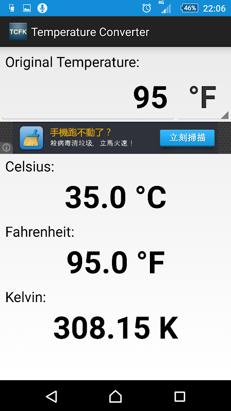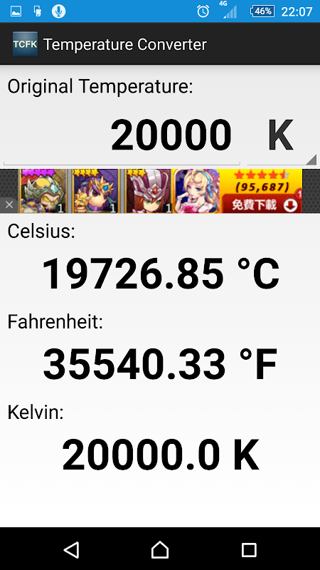 তাপমাত্রা কনভার্টার (২ ° C, ডিগ্রি ফারেনহাইট এবং K অন্তর্ভুক্ত)