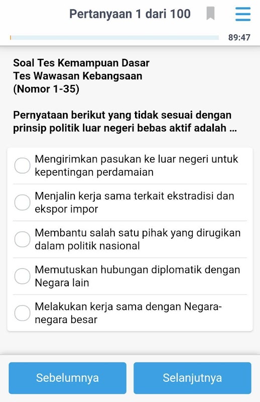 Tes SKD CPNS - Kedinasan 2020 Sistem CAT adalah simulasi tes yang berbentuk pertanyaan pilihan ganda, seluruh pertanyaan yang keluar merupakan soal-soal CPNS sebelumnya. Bagi anda yang ingin mengikuti tes CPNS aplikasi ini bisa membantu anda.