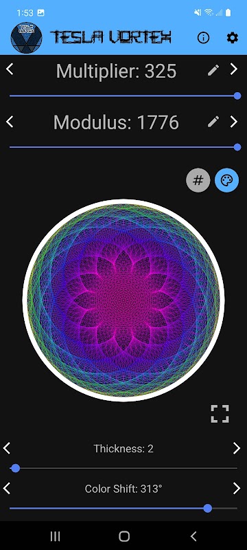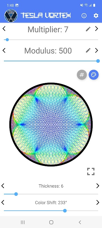 রহস্যময় 3-6-9 "টেসলা ভর্টেক্স" মহাবিশ্বের মৌলিক নিয়মে বেক করা অনেক সুন্দর ডিজাইনের মধ্যে একটি। গণিত! এই সুন্দর জ্যামিতিগুলির সাথে খেলুন, অনেক উপায়ে কাস্টমাইজ করুন, তাদের পিছনের গণিত সম্পর্কে জানুন এবং সেগুলি ভাগ করতে বা সংরক্ষণ করতে উচ্চ রেজোলিউশনের ছবি তৈরি করুন৷
