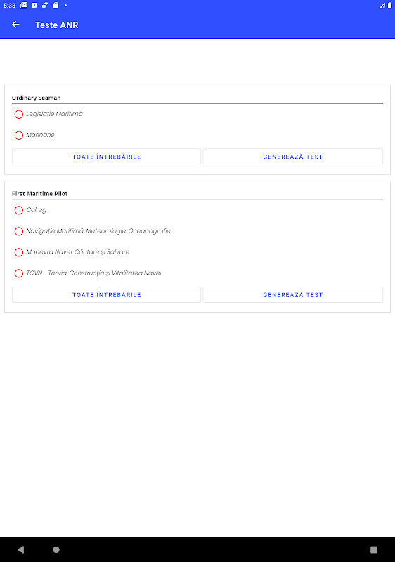 অ্যাপ্লিকেশনটি আপনাকে কন্সট্যান্টা ন্যাশনাল একাডেমি অফ সায়েন্সেসের মধ্যে পেটেন্ট এবং দক্ষতার শংসাপত্র পাওয়ার জন্য পরীক্ষা দেওয়া হবে এমন সমস্ত প্রশ্নের সেট ডাউনলোড করতে দেয়।