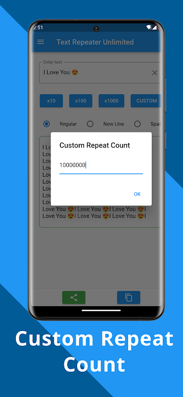 টেক্সট রিপিটার দিয়ে আপনার টেক্সটের দক্ষতা বাড়ান: রিপিট টেক্সট 10K টেক্সট বোমিং অ্যাপ