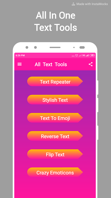Nowadays everyone wants to impress people's on social media platforms like Facebook, Twitter, Instagram, what's app then why you not ! Try our best Text decorating Tools App and impress your friends on Facebook, Twitter, Instagram, What's app.
