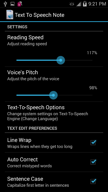 NOTE: Your phone must have a Text-to-Speech engine for this app to work or you can download the google tts engine on the Google playstore.