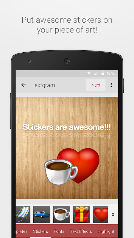 The old version of Textgram, Text in style