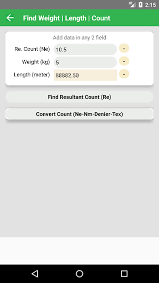 দৈর্ঘ্য এবং গণনা সম্পর্ক: দ্রুত ওজন এবং গণনা থেকে সুতার দৈর্ঘ্য বা তদ্বিপরীত খুঁজুন।