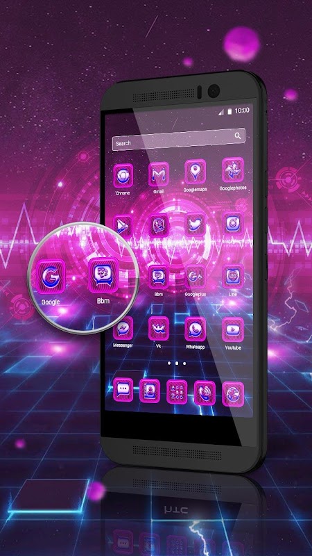 The texture technology theme comes with cool technology wallpapers, universe technology lock screen themes, purple texture app icons, lighting effects and many more.