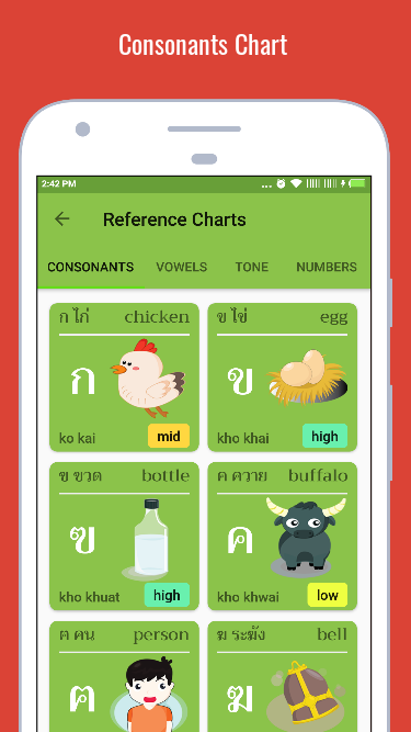 অ্যাপ্লিকেশন আপনাকে থাই বর্ণমালা পড়তে এবং লিখতে শেখায় (থাই স্ক্রিপ্ট, থাই সিলেবল, থাই প্রতীক, থাই অক্ষর, থাই অক্ষর)। আপনি যদি থাই ভাষা শিখতে চান তাহলে আপনাকে প্রথমেই বর্ণমালা (লিপি, সিলেবল, চিহ্ন, অক্ষর, অক্ষর) সাবলীলভাবে জানতে হবে।