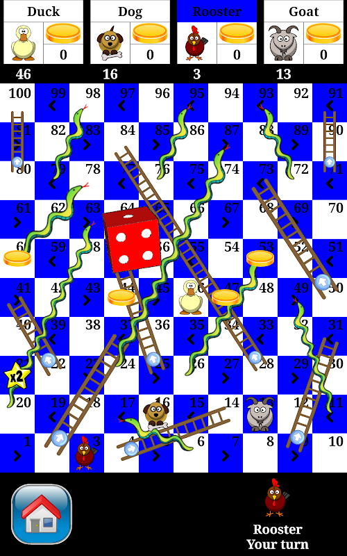 এটি একটি গেমবোর্ডে দুই, তিন বা চারজন খেলোয়াড়ের মধ্যে, গ্রিডেড স্কোয়ারগুলির মধ্যে খেলেছে। খেলার অবজেক্টটি মরসুমের মাপ অনুযায়ী শুরুতে (নীচে বর্গক্ষেত্র থেকে) ফিনিস (শীর্ষ বর্গক্ষেত্র), যথাক্রমে সিঁড়ি এবং সাপ দ্বারা সহায়তা বা বাধা দেয়, এর মাধ্যাকর্ষণ অনুসারে, কোনও খেলার টুকরো নেভিগেট করা হয়।