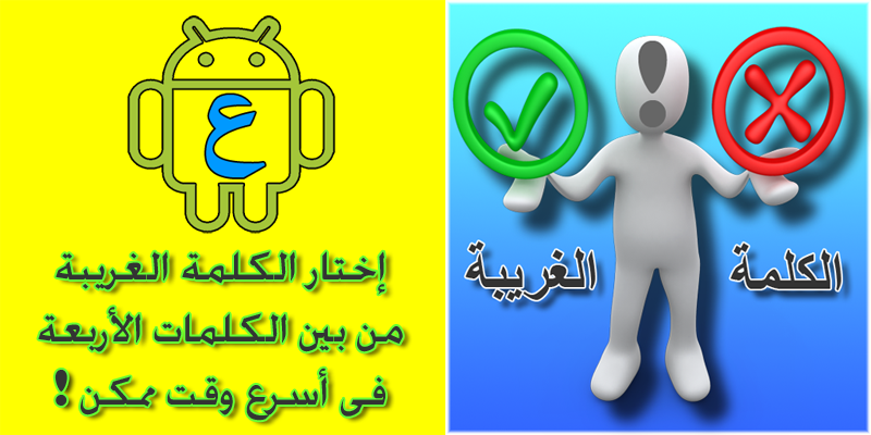 Choose the odd word from four words as fast as you can, This is an Arabic App.