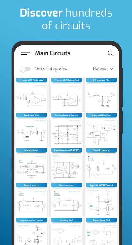 TheCircuitPro এর বিষয়বস্তুকে বিভাগগুলিতে বিভক্ত করার অনুমতি দেয় এবং দেখার সার্কিট বা বিষয় বোঝার জন্য প্রয়োজনীয় বিষয়বস্তুর পরামর্শ দেয়।