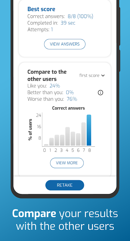 অন্যান্য ব্যবহারকারীদের কর্মক্ষমতা সম্পর্কে আগ্রহী? আপনি অন্যান্য ব্যবহারকারীদের সাথে আপনার ফলাফল এবং উত্তর তুলনা করতে পারেন।