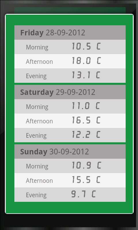ডিফল্টভাবে ডেটা সেলসিয়াস ইউনিটে উপস্থাপিত হয়। সেটিংস বিকল্প ব্যবহার করে আপনি এটিকে ফারেনহাইটেও পরিবর্তন করতে পারেন।
