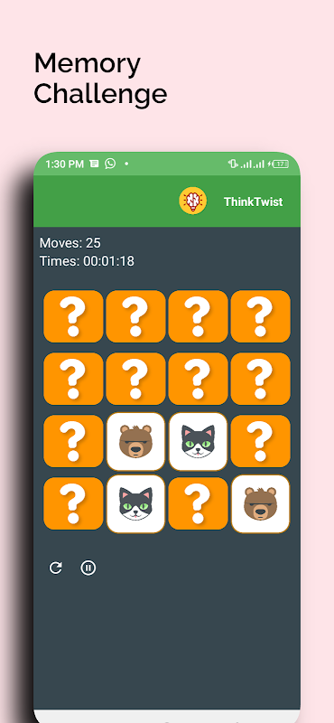 ThinkTwist-এ স্বাগতম, চূড়ান্ত মস্তিষ্ক-বুস্টিং গেম যা আপনার মনকে উদ্দীপিত করবে, আপনার স্মৃতিশক্তি বাড়াবে এবং জ্ঞানীয় মজার অফুরন্ত ঘন্টা প্রদান করবে!