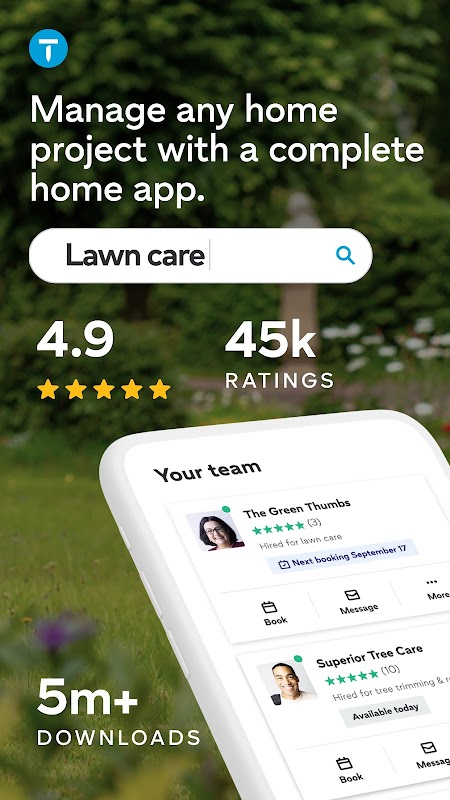 Thumbtack শত শত প্রোফাইল অনুসন্ধান করে আপনার সময় বাঁচায় যাতে আপনি আপনার প্রকল্পের জন্য উপযুক্ত স্থানীয় পেশাদারদের খুঁজে পেতে পারেন। প্রতিভাবান হাউস ডিজাইন বিশেষজ্ঞ থেকে শুরু করে Thumbtack-এর সাহায্যে হ্যান্ডম্যান পর্যন্ত, আপনি অ্যাপে যেকোনো বাড়ি বা ব্যক্তিগত প্রকল্পের জন্য পরিষেবাগুলি আবিষ্কার করতে এবং বুক করতে পারেন।