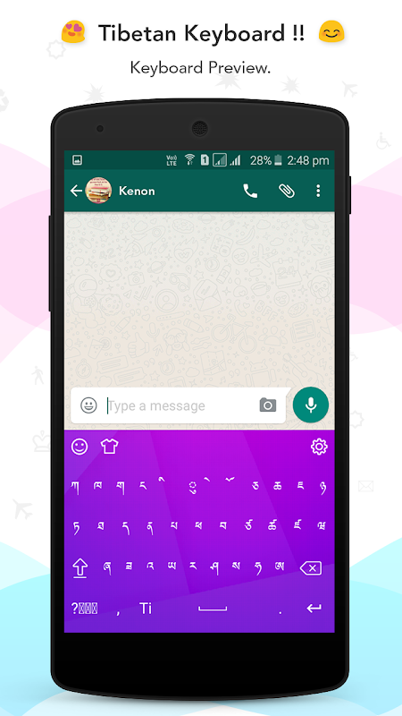 এখন তিব্বতি কীবোর্ড ব্যবহার করে আপনি আপনার মোবাইল তিব্বতি টাইপ করতে পারেন এবং কোন বন্ধুর কাছে বার্তা পাঠানো ও তিব্বত ভাষায় লিখতে পারেন
