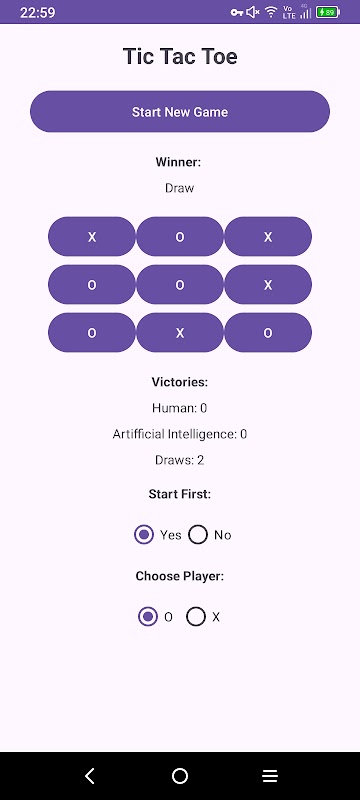 টিক ট্যাক টো গেমে কৃত্রিম বুদ্ধিমত্তার বিরুদ্ধে খেলুন।