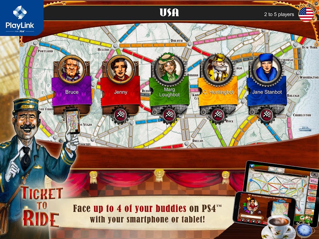 দ্রষ্টব্য: এই অ্যাপ্লিকেশনটি নিয়ামককে প্রতিস্থাপন করে। পিএস 4 ™ সিস্টেম, গেমের টিকিটটি রাইড, এবং সাথির অ্যাপ্লিকেশন টিকিট টু রাইড - প্লেলিঙ্ক খেলতে হবে। PS4 ™ সিস্টেমের জন্য PS4 ™ সিস্টেম এবং গেমের টিকিট আলাদাভাবে বিক্রি হয়।