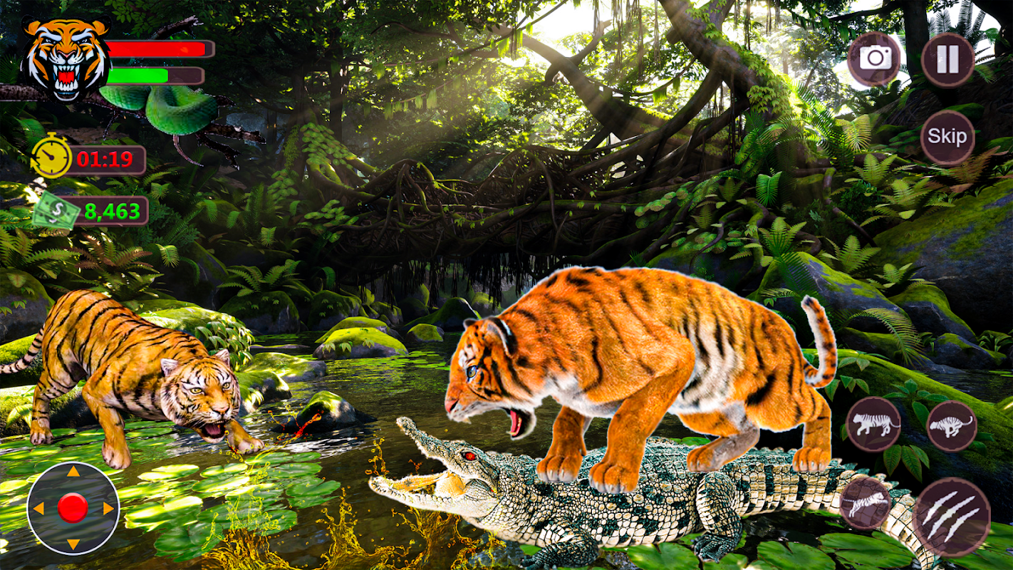 এই প্রাণীর খেলায় অ্যাকশন এবং অ্যাডভেঞ্চারের জগতে নিজেকে নিমজ্জিত করুন। জঙ্গল অন্বেষণ করুন, বিপজ্জনক প্রাণীর মুখোমুখি হন এবং বাঘ হিসাবে আপনার দক্ষতা প্রমাণ করুন। বন্যপ্রাণীর জগতে ডুব দিন এবং আপনার ভেতরের শিকারীকে মুক্ত করুন।