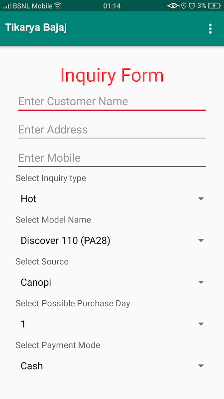 Tikarya Bajaj Enquiry Management Application