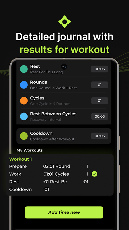 প্রিসেট বিভাগে আপনার ওয়ার্কআউটগুলি সংরক্ষণ করুন। আপনার নিজস্ব কাস্টম ব্যবধান তৈরি করাও সম্ভব। আপনি একটি সীমাহীন সংখ্যক প্রিসেট যোগ করতে পারেন।