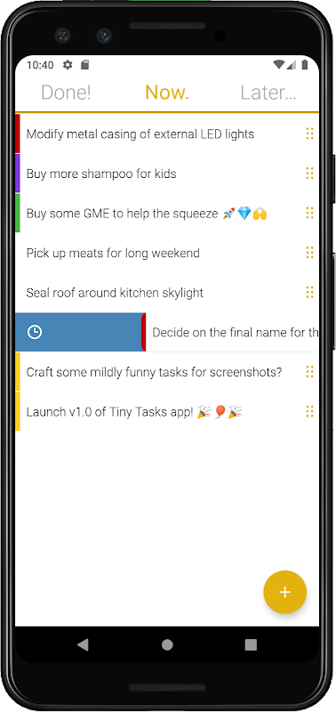 ক্ষুদ্র কার্যাদি এই সাধারণ ভিত্তিতে কাজ করে এবং দ্রুত নতুন কার্যগুলি যুক্ত করা এবং তারপরে যেখানে তাদের দরকার সেখানে সোয়াইপ করা যথাসম্ভব সহজ করে তোলে।