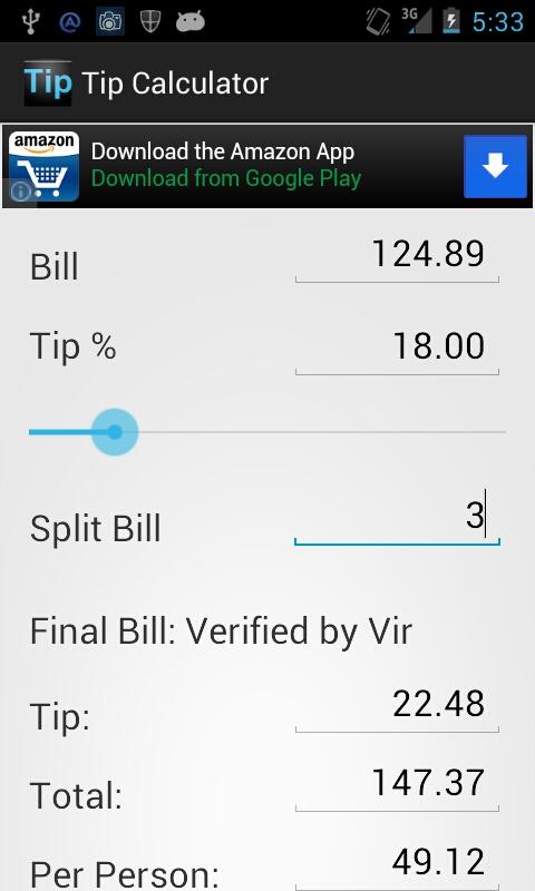এই ডগা ক্যালকুলেটর আপনার ওয়েটার এবং ওয়েট্রেস সহজ এবং দ্রুত tipping কাজটি করে তোলে।