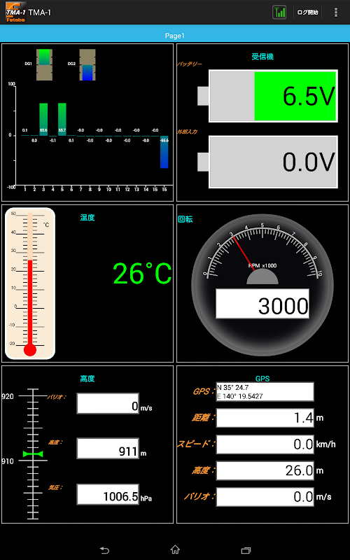 "Futaba TMA-1" Futaba propoxycarbonyl টেলিমেট্রি ডাটা প্রদর্শন করা হয় যে একটি অ্যাপ্লিকেশন.